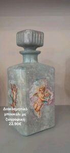 Το Διακοσμητικό Μπουκάλι με Αγγέλους είναι η ιδανική επιλογή για όσους αναζητούν μια πινελιά ρομαντισμού και κλασικής ομορφιάς στον χώρο τους. Αυτό το μοναδικό μπουκάλι είναι χειροποίητο με την τεχνική του decoupage και διακοσμημένο με υπέροχες φιγούρες αγγέλων σε απαλά παστέλ χρώματα. Το vintage στυλ και οι χρυσές λεπτομέρειες προσθέτουν έναν αέρα πολυτέλειας που σίγουρα θα τραβήξει τα βλέμματα.